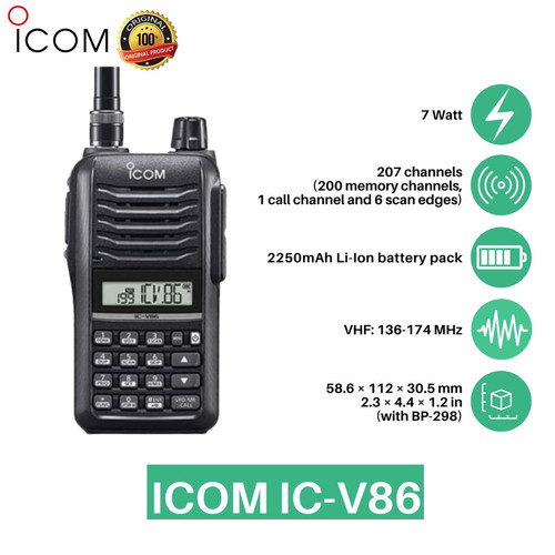Versi terbaru setelah HT ICOM V80. HT ini menawarkan daya watt yang lebih tinggi. Sangat cocok untuk kebutuhan indoor maupun outdoor. Kelengkapan sudah termasuk : Unit HT dan Earphone